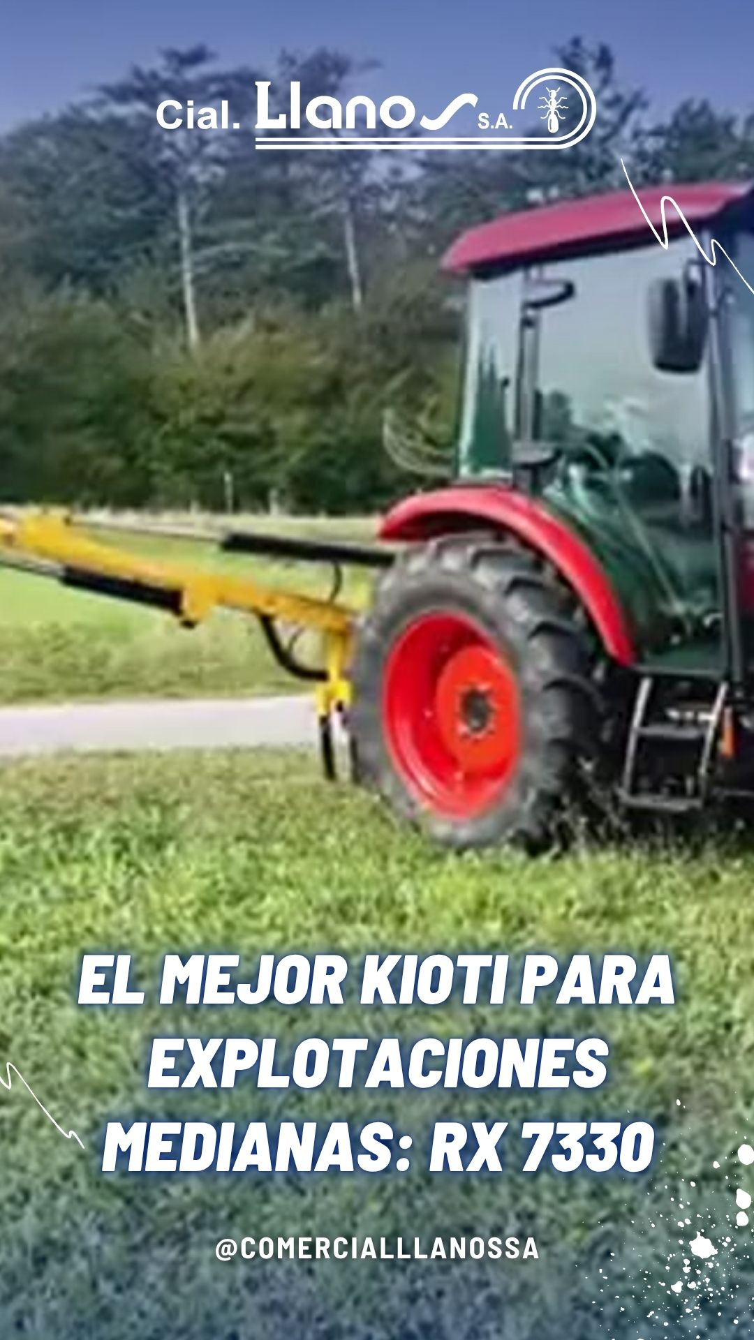 En Comercial Llanos destacamos el Kioti RX 7330, un modelo de la serie RX, con potencias entre 66 y 73 CV, disponible con cabina climatizada y una de las mayores capacidades de elevación de su clase.